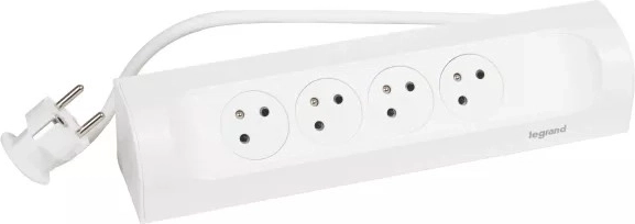 Kutni produžni kabel Legrand s četiri uzemljene utičnice u bijeloj boji odličan je izbor za mjesta gdje je potrebno štedjeti prostor. Zahvaljujući trokutastom obliku može se vertikalno ugraditi u kutove zidova ili horizontalno na spoju zida i radne plohe.