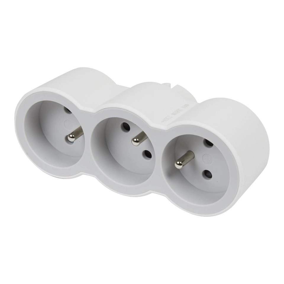 Trebate spojiti više uređaja na jednu električnu utičnicu? Bijeli plastični adapter idealan je izbor za kućanstva i urede. S tri izlaza omogućuje praktično napajanje više uređaja odjednom.