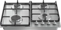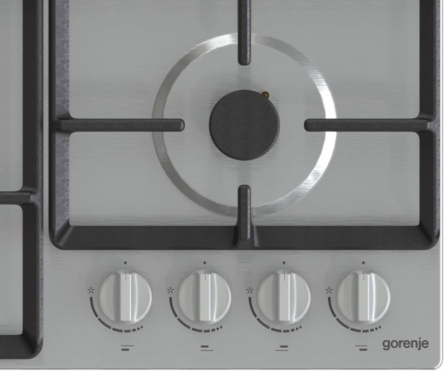 Ova plinska ploča od nehrđajućeg čelika spaja moderan izgled s praktičnošću za svakodnevno kuhanje. Proširena površina kuhanja i veći razmaci između plamenika pružaju dovoljno mjesta i za vrlo veliko posuđe, dok rešetke od lijevanog željeza osiguravaju stabilnost i izdržljivost čak i pri visokim temperaturama.