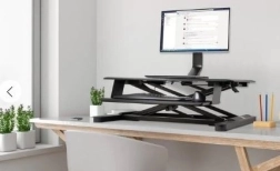 - Jednostavna, nepermanentna instalacija uključuje potreban alat i unaprijed instaliranu C-stezaljku okrenutu prema prednjem dijelu stola, što znatno pojednostavljuje ugradnju, osobito u skučenim prostorima (opcionalni nosač kroz otvor uključen je u pakiranje). C-stezaljka je prikladna za stolove debljine do 85 mm (3,3 inča). Nosač kroz otvor prikladan je za stolove debljine do 40 mm (1,5 inča). Kompatibilno sa sit/stand radnim stolovima.