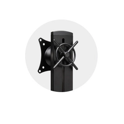 Ručica omogućuje brzo i jednostavno podešavanje visine (9,4"–18,5"), nagiba i zakretanja (+/- 10°), okretanja u pejzažnu ili portretnu orijentaciju (+/- 180°) te zaključavanje monitora na mjestu. Ugradnju monitora dodatno pojednostavljuje VESA element za brzo otpuštanje.