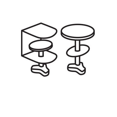Paket sadrži potreban alat i unaprijed instaliranu C-stezaljku okrenutu prema prednjem dijelu stola, što značajno olakšava ugradnju, osobito u skučenim prostorima (opcionalni nosač kroz otvor uključen je u pakiranje). C-stezaljka je prikladna za stolove debljine do 85 mm (3,3 inča). Nosač kroz otvor prikladan je za stolove debljine do 40 mm (1,5 inča). Kompatibilno sa sit/stand radnim stolovima.