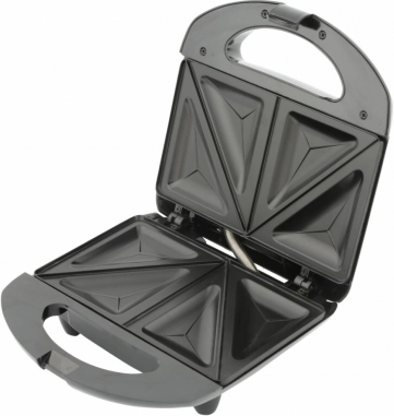 Praktična konstrukcija nudi kapacitet do 4 trokutasta sendviča u jednom ciklusu, zaključavajuću kopču za sigurno pečenje i svjetlosne indikatore za pregled nad radom. Toplinski izolirano kućište se tijekom rada ne pregrijava, što povećava sigurnost i udobnost upotrebe. Elegantna crna izvedba s sjajem i čeličnom pločom odlično se uklapa u modernu kuhinju.