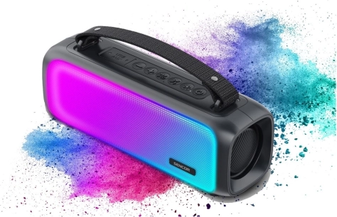 Stilski prijenosni zvučnik SENCOR SSS 3000 Kids spaja izražajan zvuk s razigranim LED osvjetljenjem koje lako isključite kad poželite neometano slušanje. Zahvaljujući snazi od 16 W i bežičnoj Bluetooth povezivosti idealan je za dom, vrt i izlete.