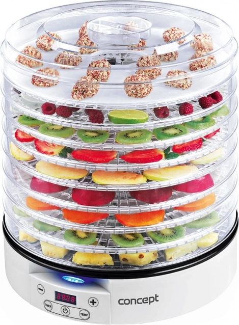 Sušilica za hranu Concept SO2020 idealna je za pripremu zdravih grickalica i prehrane RAW FOOD. Zahvaljujući podesivom rasponu temperatura od 35 °C do 70 °C i visoko učinkovitom ventilatoru nudi savršeno sušenje svih namirnica.