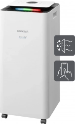 CONCEPT Perfect Air OV2216 spaja učinkovito odvlaživanje i napredno pročišćavanje zraka u jednom uređaju. Zahvaljujući kapacitetu do 16 l/dan i velikom spremniku od 3,5 l brzo smanjuje vlagu i sprječava rast plijesni. Četverostupanjska filtracija s predfiltrom, ugljikovim filtrom, UVC i ionizatorom zadržava prašinu, alergene, mirise i mikroorganizme za čišći i zdraviji dom.