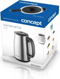 Uz brzo-kuhalo Concept 1,7 l RK3260 s snagom od 2200 W vodu za kavu ili čaj pripremit ćete u trenu. Kuhalo od nehrđajućeg čelika savršeno se uklapa u svaku modernu kuhinju zahvaljujući elegantnom dizajnu i praktičnim funkcijama.
