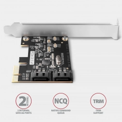 PCI‑Express kontroler dodaje vašem računalu dva neovisna SATA III 6G porta za povezivanje SSD‑ova, HDD‑ova i optičkih pogona. Zahvaljujući kompatibilnosti sa SATA 3.0/2.0/1.0 i AHCI načinom rada dobivate stabilne performanse, moderne funkcije i bezbrižno pokretanje sustava s priključenih diskova.