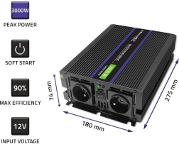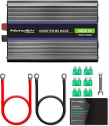 Tražite pouzdan izvor 230 V iz 12 V akumulatora za kampiranje, kamper, brod ili radionicu? Pretvarač napona MONOLITH MS Wave s modificiranom sinusoidom pruža stabilnu snagu do 3000 W vršno (1500 W kontinuirano), pa bez problema pogoni TV, prijenosnik, punjače, manje kućanske uređaje ili uredsku opremu. Aluminijsko rebrasto kućište osigurava učinkovito hlađenje i dug vijek trajanja.