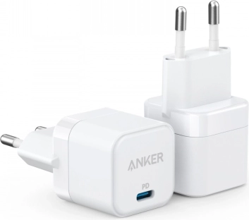 Kompaktan punjač Anker PowerPort III 20W Cube s USB‑C PD. Brzo i sigurno punjenje za iPhone, Samsung, Pixel. EU utikač, bijela.