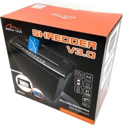 Uništavač SHREDDER V3.0 praktično je rješenje za sigurnu likvidaciju osobnih i poslovnih dokumenata. Svladava papir, plastične folije i platne kartice te ih pretvara u uske trakice širine 6,8 mm, koje znatno otežavaju povratno sastavljanje podataka. Zahvaljujući kompaktnim dimenzijama stane na svaki stol i jednostavan je za uporabu.