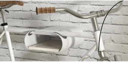 Drvena polica iznad krakova nosača pruža praktičan prostor za ključeve, lokot ili sitne biciklističke dodatke. Montaža je jednostavna – na zid se pričvršćuje priloženim tiplama. Nosač je kompatibilan s biciklima s ravnom gornjom cijevi okvira (do 55 mm) i volanima širine do 500 mm.
