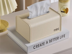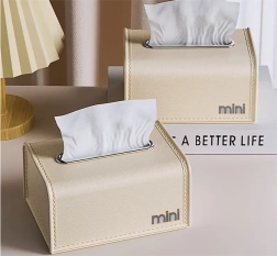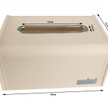 Dimenzije 9,3 × 19 × 13,5 cm idealne su za uobičajene maramice (maks. duljina 17 cm). Ukrasna kutija dostupna je u krem ili smeđoj boji; proizvod se isporučuje u mješavini boja bez mogućnosti odabira. Odaberite praktičan organizator koji će maramice držati uvijek pri ruci i pritom ukusno upotpuniti vaš interijer.