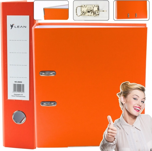 Želite imati račune, ugovore i školske materijale uvijek pri ruci? Ovaj polužni registrator A4 u upečatljivoj narančastoj boji spaja visok kapacitet i pouzdanu konstrukciju. Niklani polužni mehanizam omogućuje brzo umetanje i vađenje listova, a metalna okovlja odolijevaju koroziji. Ojačana donja letvica povećava ukupnu čvrstoću, pa registrator odlično podnosi svakodnevnu upotrebu.