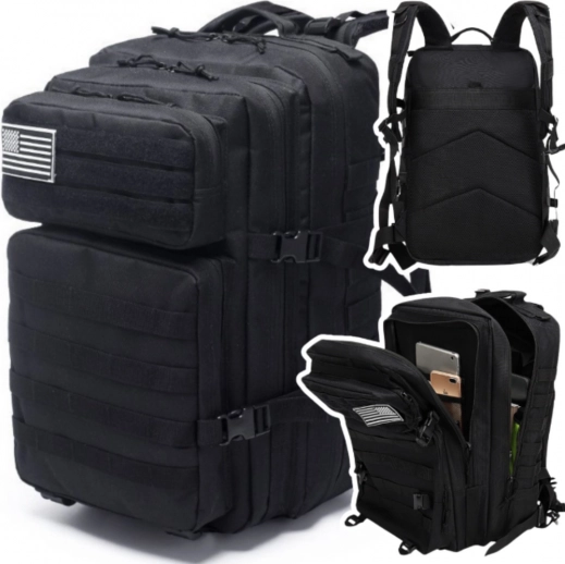 Univerzalni taktički ruksak 40–60 l u crnoj boji za planinarenje, izlete i svakodnevno nošenje. Nudi izdržljiv poliester, ergonomski nosivi sustav, ventilaciju leđa i modularni MOLLE sustav za proširenje kapaciteta. Zahvaljujući kompresijskim trakama, vodootpornoj konstrukciji i pametnoj unutarnjoj organizaciji sigurno ćete prenijeti sve potrebno.