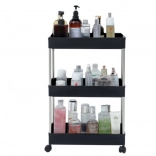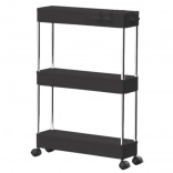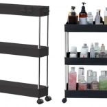 Praktičan pomični regal s 3 police u elegantnoj crnoj boji za jednostavnu organizaciju u kuhinji, kupaonici i dnevnoj sobi. Zahvaljujući kompaktnim dimenzijama, mobilnoj konstrukciji na kotačićima i stabilnoj izvedbi od metala i izdržljive plastike, nudi pregledno odlaganje začina, kozmetike, knjiga i dekoracija.