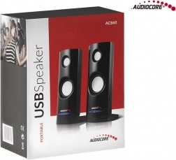 Uživajte u uravnoteženom stereu sa zvučnicima Audiocore AC860, koji se ističu kvalitetnim prikazom detalja i modernim dizajnom otpornim na ogrebotine. Idealni su za prijenosna računala, stolna PC računala i tablete s izlazom za slušalice.