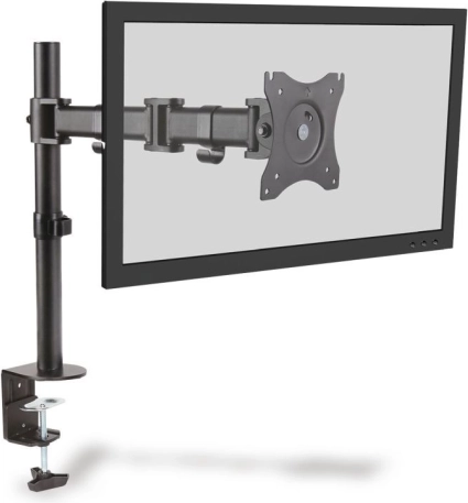 Univerzalni stolni nosač za jedan monitor do 27" s nosivošću 8 kg donosi ergonomsko podešavanje, 360° okretanje (pivot) i nagib ±45°. Montaža se vrši čvrstom stezaljkom na ploču stola, kompatibilnost sa standardom VESA 75x75 i 100x100. Integrirano vođenje kabela održava radno mjesto čistim i preglednim.