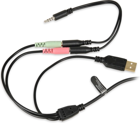 USB napaja diskretno osvjetljenje, dok dvostruki 3,5 mm priključak osigurava čist prijenos zvuka. U pakiranju je i adapter na jedan 3,5 mm combo priključak.