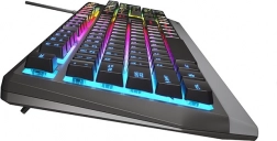 Impresivno RGB osvjetljenje s 11 načina omogućuje mijenjanje brzine i intenziteta efekata. U korisničkom načinu birate jednu od 8 unaprijed postavljenih RGB boja za 7 neovisnih zona i usklađujete tipkovnicu s vašom gaming konfiguracijom. Stabilnost osiguravaju gumeni protuklizni podlošci i preklopne nožice za idealan kut tipkanja.