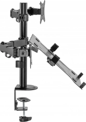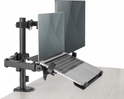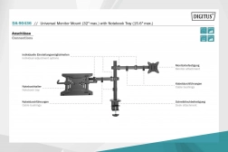 Držač omogućuje individualnu, prostorno učinkovitu i ergonomsku montažu monitora s dijagonalom do 32''/9 kg i prijenosnog računala s dijagonalom do 15,6''/4 kg. VESA nosač podržava: Nosač nudi dvije mogućnosti montaže: stezna stolna kopča i provrtna montaža dio su isporuke. Zahvaljujući brzom otpuštanju, VESA ploča se pri montaži/demontaži može pričvrstiti ili odvojiti pomoću vijka. Zahvaljujući integriranom vođenju kabela, na radnom mjestu vlada urednost.