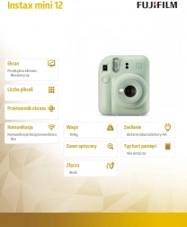 INSTAX Mini 12 donosi radost analognog fotografiranja u razigranom i modernom dizajnu. Jednostavno upravljanje – okreni, naciljaj i okini – i za čas u ruci držiš svoju trenutnu fotografiju formata kreditne kartice. Zahvaljujući automatskoj bljeskalici i pametnoj ekspoziciji dobit ćeš lijepo osvijetljene snimke i u zatvorenom i na otvorenom.
