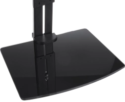 Integrirana staklena polica prima Blu‑ray reproduktor, set‑top box, igraću konzolu ili tablet i pomaže držati kabele i dodatke pregledno na jednom mjestu.