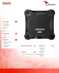 Ovaj vanjski SSD disk ADATA SD620 opremljen je brzim prijenosom podataka, omogućujući prijenos 10GB 4K videa u samo 20 sekundi. Dizajniran za lako sigurnosno kopiranje podataka bez napora. Zahvaljujući otpornosti na udarce prema MIL-STD standardu izdržava slučajne padove s visine do 1,22 metra bez oštećenja.