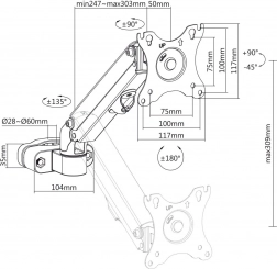 Sastavni dio nosača je plinska opruga koja omogućuje lako i glatko podešavanje visine monitora. Kompatibilan je s VESA standardima 75x75 i 100x100 mm, što omogućuje besprijekornu montažu zaslona različitih marki poput Sony, LG, Samsung, Philips i drugih.