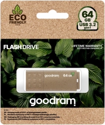 GOODRAM UME3 Eco Friendly moderan je USB flash disk dizajniran i proizveden u Poljskoj, koji spaja pouzdanost i održivost. Biorazgradivo kućište smanjuje ekološki otisak, dok USB 3.2 sučelje (unatrag kompatibilno s USB 2.0) osigurava brz rad s podacima.