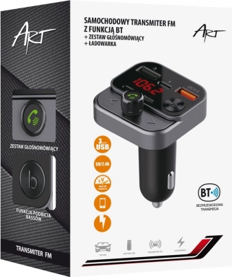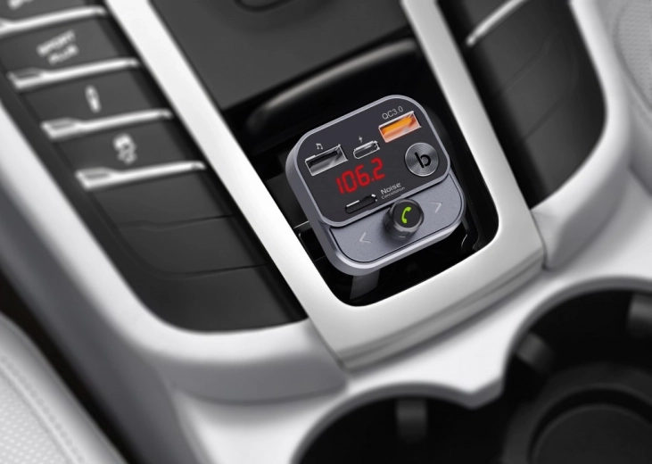 Praktični automobilski FM odašiljač s Bluetoothom 5.0 omogućuje reprodukciju glazbe s telefona ili USB-a izravno na autoradio i istodobno brzo punjenje uređaja. Nudi brzo punjenje QC 3.0, stabilan prijenos preko Bluetootha 5.0, handsfree pozive zahvaljujući ugrađenom mikrofonu i jasan LED zaslon za jednostavno upravljanje.
