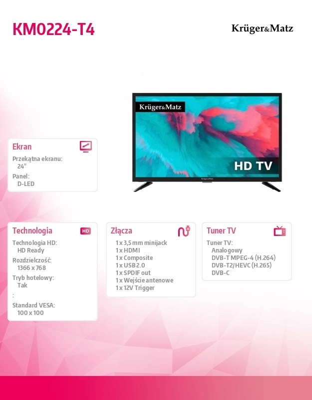 Otkrijte potpuno novo iskustvo gledanja s ovim 24‑inčnim HD televizorom. Ne samo da pruža visoku rezoluciju, već i inovativne značajke poput DVB-T2 za prijem kvalitetnog digitalnog emitiranja. Tehnologija H.265 HEVC osigurava prijenos bez gubitka kvalitete.