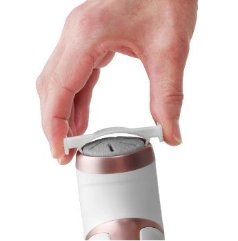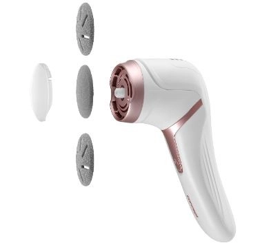 Električna rašpa za pete Concept PN3000 dolazi s 3 zamjenjive podloge za različite vrste tretmana. Fina navlaka prikladna je za osjetljiva područja, srednje gruba idealna je za svakodnevnu upotrebu, a gruba za suhu i zadebljalu kožu. Otvori unutar nastavaka služe za usisavanje odstranjenih čestica kože.