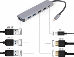 USB-C adapter Razdjelnik USB-C PD HDMI x2 USB 3.0x3