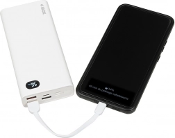 Uživajte u slobodi bez utičnice. Ova kompaktna i izdržljiva power banka s velikim kapacitetom od 20 000 mAh pouzdano će napuniti vaš telefon, tablet i slušalice. Zahvaljujući podršci za brzo punjenje Power Delivery (PD) i Quick Charge (QC) energiju ćete dopuniti zaista brzo, i to preko univerzalnih priključaka USB‑C i USB‑A. Pregledan LCD zaslon točno prikazuje preostali kapacitet, pa uvijek znate kada je vrijeme za punjenje.