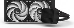 Radijator od aluminija s maksimaliziranom površinom i mogućnošću montaže u različitim položajima podržava konfiguraciju push/pull za vrhunski protok zraka. Dva ventilatora ZALMAN AF120 ARGB sa specijalnim “shark fin” lopaticama, hidrodinamičnim ležajem i PWM regulacijom minimiziraju buku i povećavaju dugovječnost. U paketu je i kvalitetna termalna pasta ZM‑STC10 za savršen prijenos topline između CPU-a i baze.