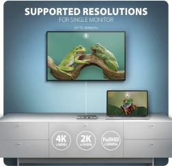 - Snažan video: 4K/60 Hz, 2K/120 Hz, Full HD/240 Hz, HDR, HDCP 1.4/2.3 (zahtijeva USB‑C s DP Alt Mode 1.4+ ili Thunderbolt 3/4).