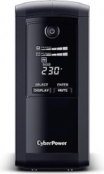 CYBERPOWER VP700ELCD-FR je line-interactive UPS dizajniran za siguran rad osjetljive elektronike. Zahvaljujući AVR-u (Automatic Voltage Regulation) održava stabilan izlazni napon i štiti vaše uređaje bez nepotrebnog prebacivanja na bateriju. Multifunkcionalni LCD jasno prikazuje status napajanja, opterećenje i kapacitet baterije, tako da imate sve pod kontrolom u stvarnom vremenu.