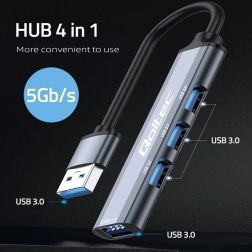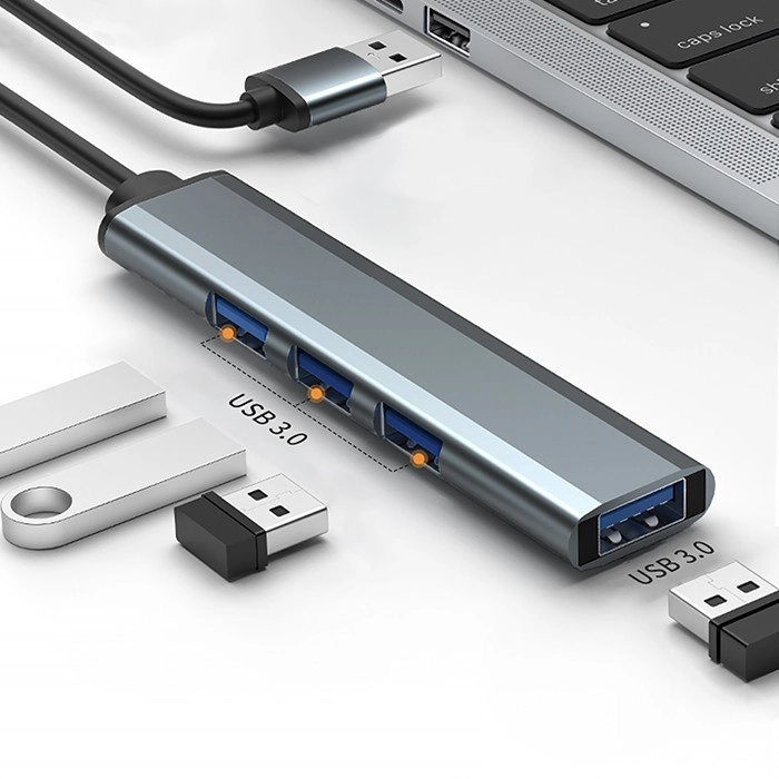 Praktični USB hub proširit će vaš uređaj s 4 punokrvna USB 3.0 porta za istodobno povezivanje periferija poput miša, tipkovnice, pisača, flash memorije ili vanjskog diska. Zahvaljujući brzini do 5 Gb/s bez čekanja ćete obaviti sigurnosno kopiranje, kopiranje i sinkronizaciju.