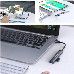Proširite povezivost svog uređaja i priključite više dodataka istovremeno – miš, tipkovnicu, pisač, flash memoriju ili bežične dongle. USB‑C čvorište 4-u-1 nudi praktičan raspored portova, lagano je i prijenosno te bez problema stane u džep ili ruksak. Robusna aluminijska konstrukcija povećava izdržljivost i pomaže pri odvodu topline.