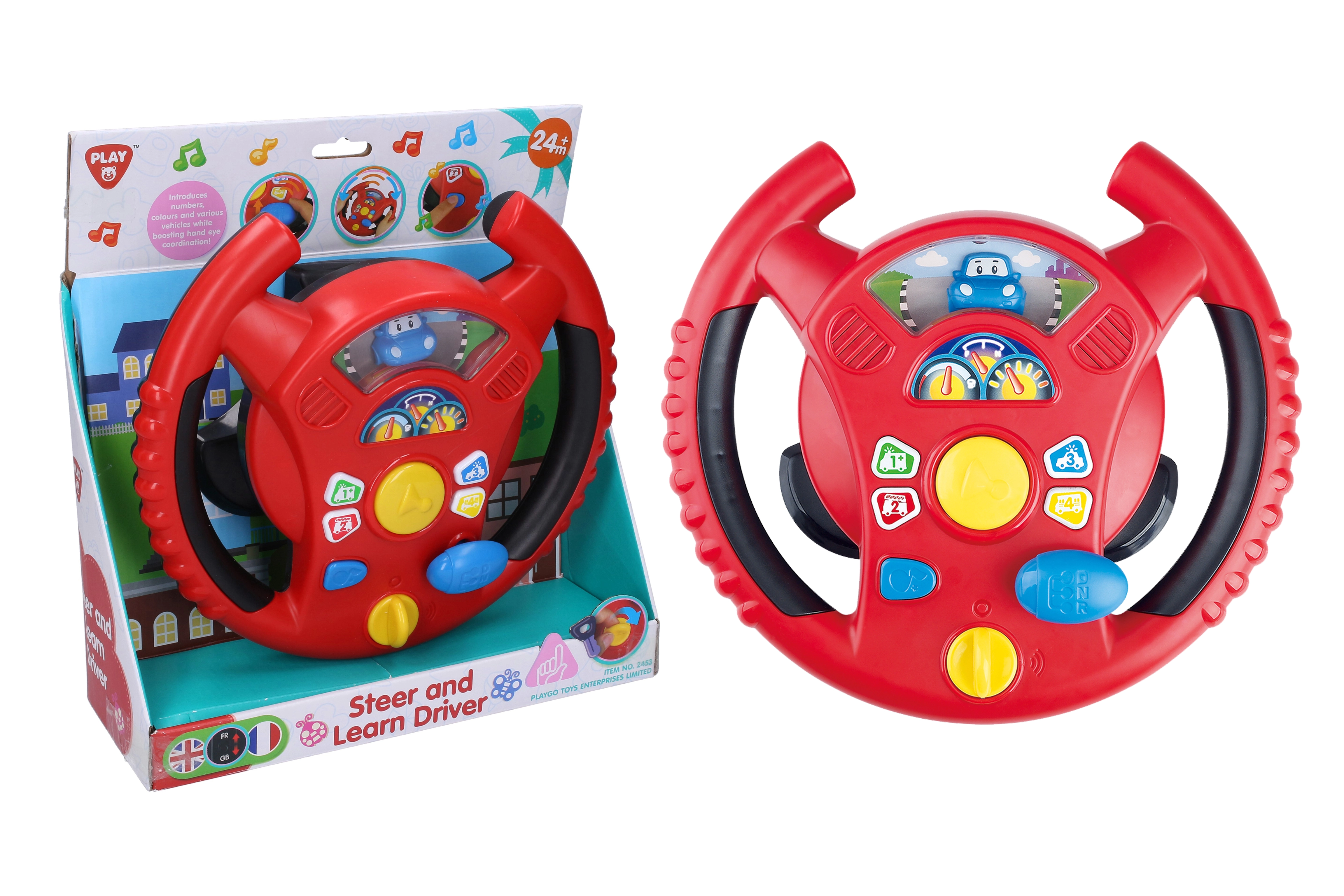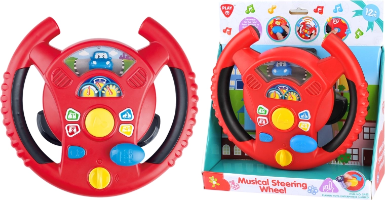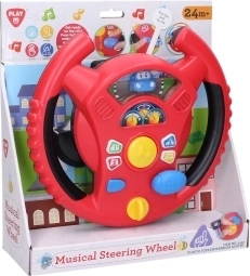 Interaktivni volan Playgo donosi djeci zabavnu igru vožnje u mini gradu. Okretni prekidač na donjoj strani volana služi za uključivanje, u sredini se nalazi truba, desno ručica mjenjača za zvukove vožnje, a na obruču volana mala tipkala s tonovima i melodijama. Djeca će uživati u realističnim efektima koji podsjećaju na pravi automobil, pritom razvijajući koordinaciju i maštu.