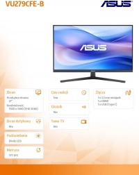 ASUS VU279CFE spaja elegantan bezokvirni dizajn s praktičnim funkcijama za svakodnevnu produktivnost. IPS panel jamči precizne boje i odličnu čitljivost, dok frekvencija 100 Hz s 1 ms MPRT poboljšava glatkoću pokreta pri radu u pregledniku, uredskim aplikacijama i laganom igranju.