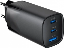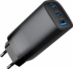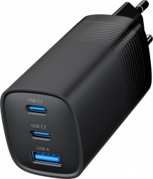 Punjač s tri priključka pruža visoku snagu od 65 W, koja je dovoljna za brzo punjenje pametnih telefona i prijenosnih računala. Koristi tehnologiju GaN, što omogućuje kompaktan i prenosiv uređaj koji je ujedno i energetski učinkovit.