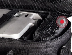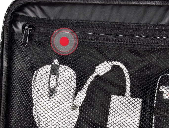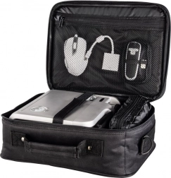 Promišljena unutrašnjost s kliznom i izvadivom pregradom omogućuje lako prilagoditi prostor projektoru i priboru. Poseban džep za dokumente, unutarnji mrežasti džep sa skrivenim patentnim zatvaračem i prednji vanjski džep osiguravaju pregledno odlaganje svih potrepština – od kabela do daljinskog upravljača.