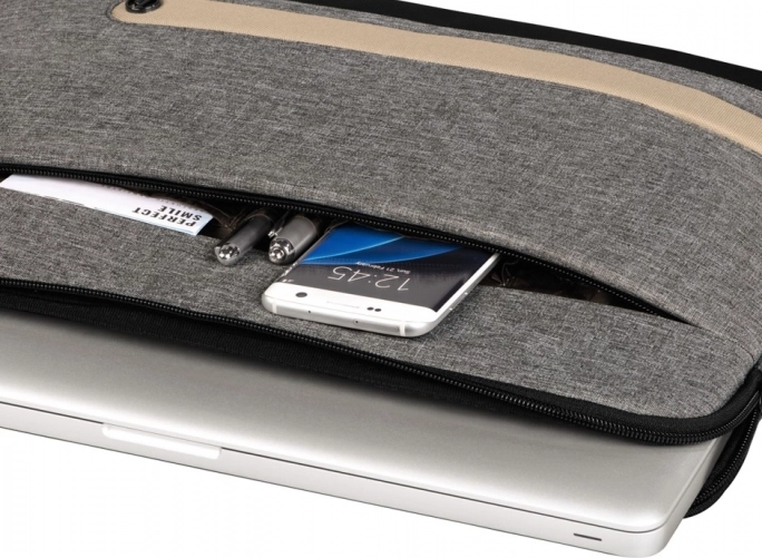 Futrola je opremljena i prednjim džepom namijenjenim osobnim stvarima i priboru. Podstavljena unutrašnjost čuva sve na sigurnom, a glavni pretinac zatvara se s dva izdržljiva patentna zatvarača