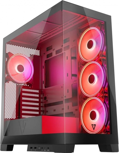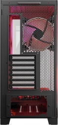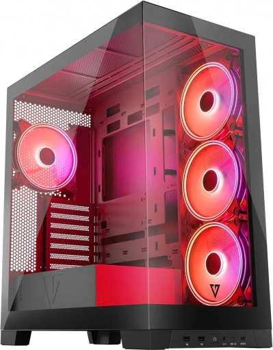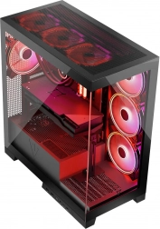 Volcano Space je moderno PC kućište za zahtjevne igrače i entuzijaste koji žele savršeno izložiti svoje komponente. Prednja i bočna ploča od kaljenog stakla stvaraju čist “showcase” izgled, a zajedno s 4× 140 mm ARGB ventilatorima naglašavaju svaku konfiguraciju. Zahvaljujući podršci za ploče s obrnutim konektorima (npr. MSI Project Zero, ASUS B760M‑BTF) lako ćete sakriti kablove i postići preciznu, estetsku unutrašnjost.