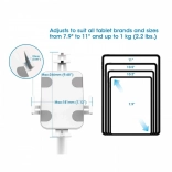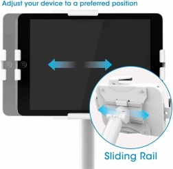 Samostojeći podni stalak s podesivom visinom za tablete od 7,9" do 11", okretanje 360°, nagib +20° do -110°, bijeli