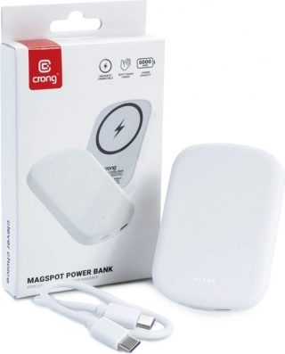 Bežična power banka MagSpot jedna je od najmanjih i najlakših power banka kapaciteta 5000mAh, kompatibilna s MagSafe. Zahvaljujući snažnim magnetima osigurava sigurno korištenje i istodobno punjenje iPhonea (iPhone 12 i noviji).