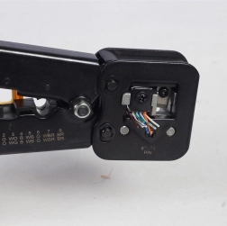 Ova krimpalica dizajnirana je za profesionalnu uporabu i za kućne majstore. Omogućuje krimpanje, rezanje i skidanje izolacije kabela u jednom potezu. Zahvaljujući ugodnom ergonomskom rukohvatu uporaba alata je jednostavna i učinkovita. Kompatibilna je s većinom modularnih prolaznih konektora i prikladna za standardne modularne konektore 8P8C, 6P6C i 6P4C.