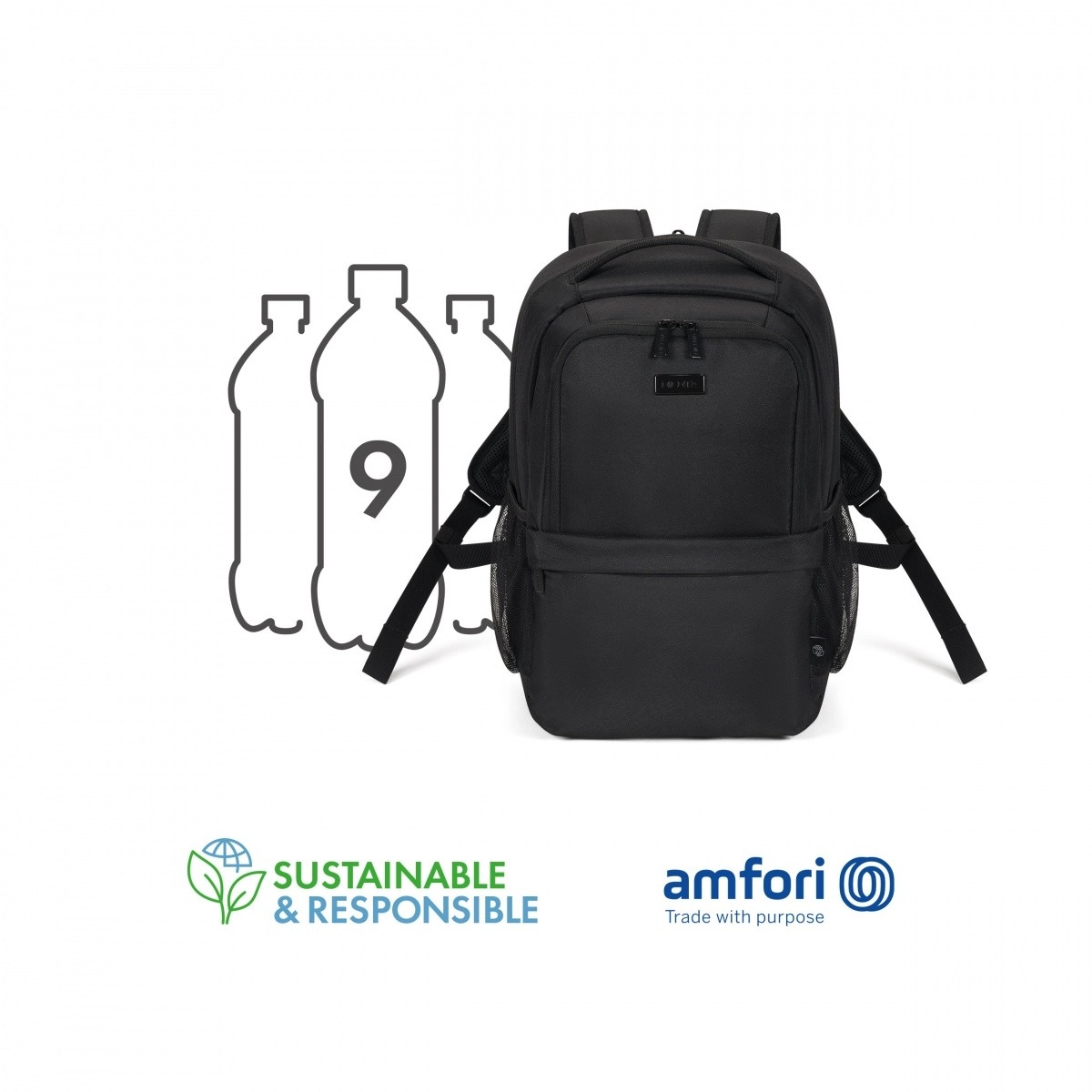 Ruksak Eco CORE s velikim spremišnim prostorom zapremnine 24 litre nudi dovoljno mjesta za vaše svakodnevne potrebe. Pretinac za prijenosno računalo podstavljen pjenom visoke gustoće (HDF) optimalno štiti vaše računalo, dok prostrani glavni pretinac s praktičnim odjeljcima olakšava organizaciju dokumenata i dodatne opreme. Prednji džep posebno je dizajniran za mobilnu dodatnu opremu, dok džep s patentnim zatvaračem nudi prostor za napajanje i kabel. Skriveni pretinac za GPS lokator omogućuje da ruksak uvijek bude pod nadzorom, a džep s patentnim zatvaračem i RFID zaštitom štiti osobne podatke od neovlaštenog pristupa. Podstavljene naramenice s reflektirajućim elementima za bolju vidljivost pri slabijim svjetlosnim uvjetima pružaju maksimalnu udobnost. Ergonomski podstavljeni leđni dio osigurava ugodu i pri duljem nošenju. Praktični, prostorno štedljivi bočni džepovi nude dodatni prostor za kišobran ili bocu s vodom, a vodootporan materijal štiti ruksak i njegov sadržaj u slučaju iznenadnih vremenskih promjena. Ruksak Eco CORE spaja stil, funkcionalnost i brigu za okoliš u jednom proizvodu.